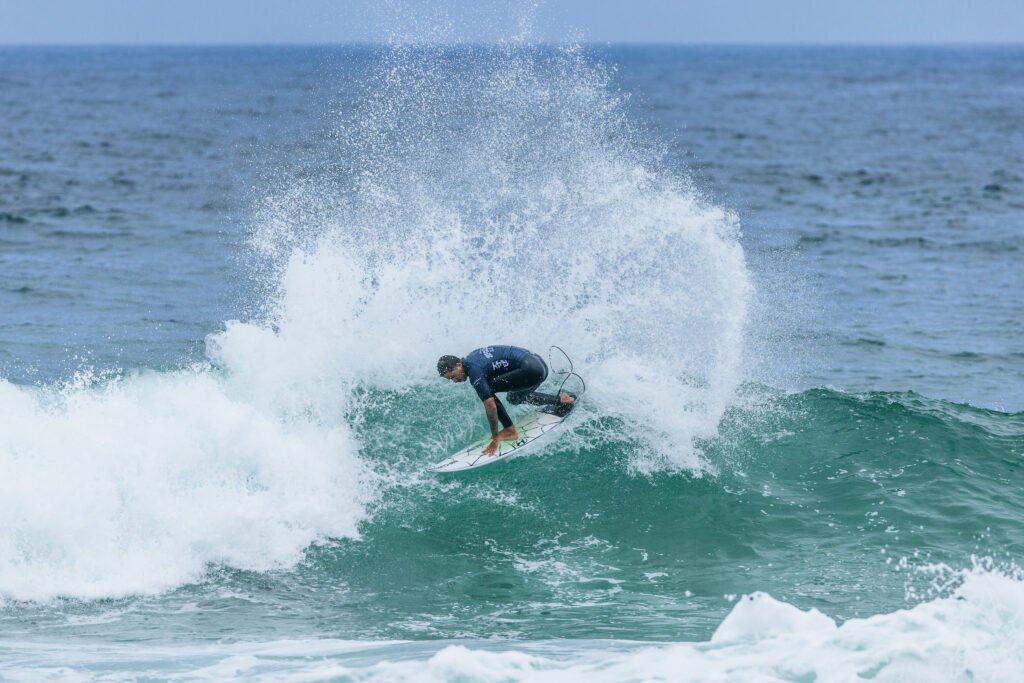 Após um início de dia difícil com a eliminação de Mateus Herdy (BRA), atual número 4 do ranking brasileiro, na Rodada dos 32, os brasileiros reagiram com força na Rodada dos 16, liderados pelo campeão do Saquarema Pro 2023, Samuel Pupo (BRA). Pupo enfrentou o também ex-competidor do CT Jackson Baker (AUS) e mostrou mais uma vez toda a potência do seu backside, somando 12,50 pontos (de 20 possíveis) em sua bateria.
